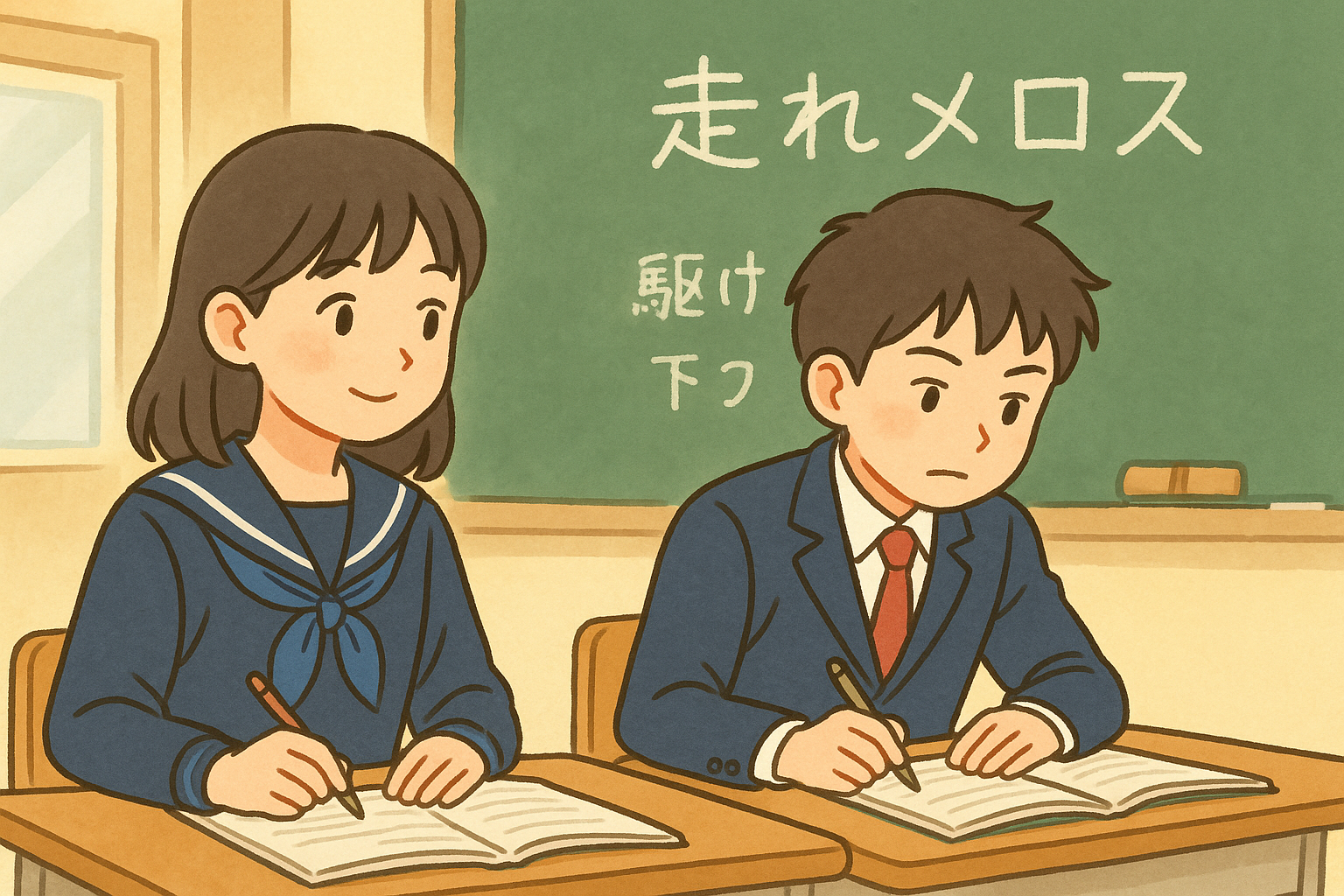 でも、実はこの考え方こそが点数が伸びない最大の原因です。国語のテストは「記憶」ではなく「理解」を問われる科目。本文を何度も読み、設問に準備する時間が必要なんです。たとえば光村書店の教科書なら、「あの人の声」「握手」「走れメロス」など、深い読み取りが求められる題材が多いですよね。